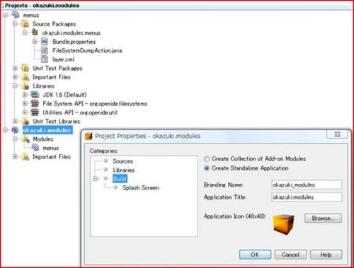 Lookupの他にFileSystemもNetBeansのModuleを書く上では重要っぽい。 こいつはLookupみたいにjarを1つ追加するだけで使えるよ〜っていうような記述は見当たらなかったので、大人しくNetBeansのモジュールとして作って見た。 構成はこんな感じ okazuki.modul…