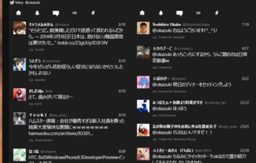 UserStreamingに対応した個人的おすすめクライアントを紹介します。 Mevy Mevy app for Windows in the Windows Store まず、最初は折り鶴のアイコンのMevy.このツイッタークライアントは搭乗当初から安定稼働してるのが個人的に気に入っていて、広告は出ま…