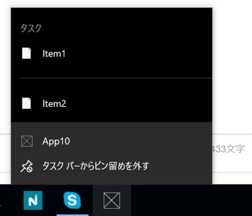 APIはとても簡単ですJumpListクラスとJumpListItemクラスを使うだけです。説明よりもコードが明瞭なくらい。以下のような感じになります。 var jumpList = await JumpList.LoadCurrentAsync(); jumpList.Items.Clear(); jumpList.Items.Add(JumpListItem.Cre…