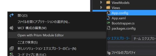 Prismのテンプレートパッケージを入れるとApp.configのエディタが追加されます。 visualstudiogallery.msdn.microsoft.com App.cinfigを右クリックするとOpen with Prism Module Editorというのが表示されます。 これでApp.configを開くと以下のようにモジュ…
