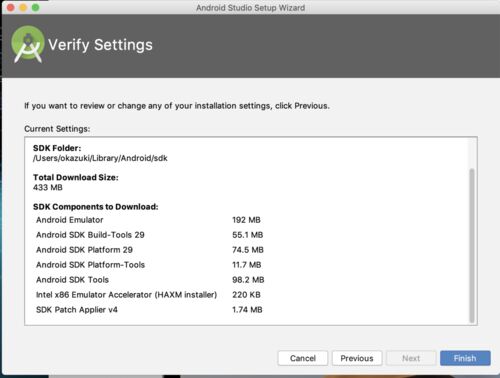 Windows に作ったけど、iOS アプリの動作も確認したかったら mac っしょ。ということで macOS にも作ってみました。 Java 1.8 は入っていたので、Android Studio をインストールしました。 developer.android.com Android Studio を起動したら SDK を入れた…